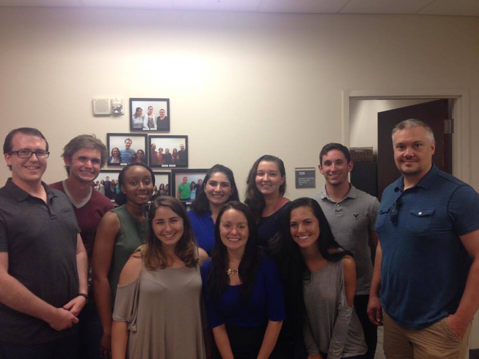 2013-2014 Lab Staff (left to right): Destini, Tess, Lizzie, Emily, Dr. Dvorak, Michelle, Cody, Phillip, & Calie. Missing: Kalli
